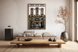 - Mounted on a wood frame. Ready to be hung.